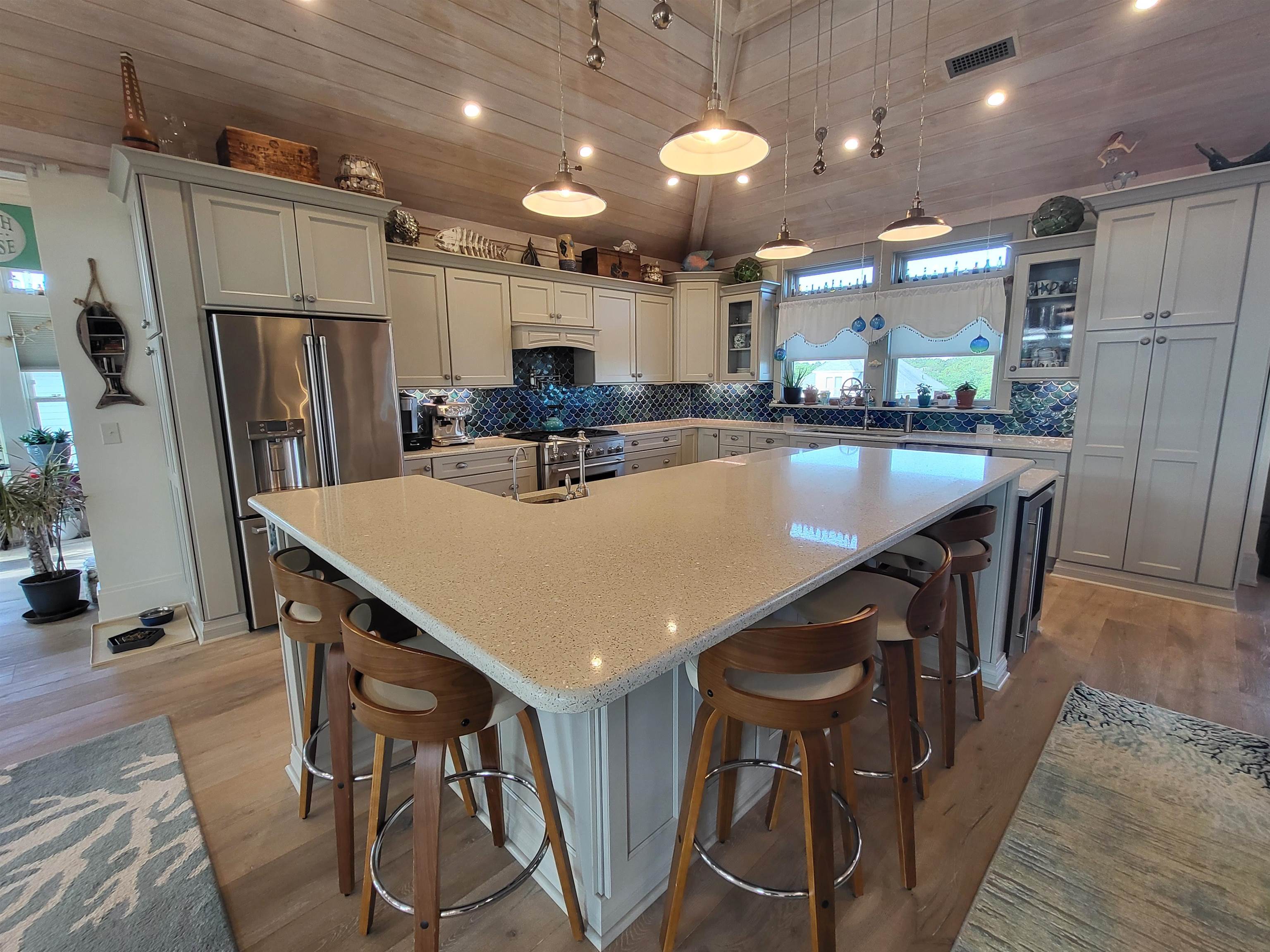 SEE APPRAISAL IN ASSOC DOCS. Experience unparalleled coastal living in this stunning 4-year-old custom-built primary residence that’s over 4000 sq ft (never rented), situated just four lots from the pristine shores of the Whalehead beaches in Corolla and the Atlantic Ocean. This magnificent home offers an exceptional blend of luxury, comfort, and convenience, designed to cater to the most discerning tastes: Prime Location. Proximity to the Ocean: Only four houses away from the Atlantic Ocean, providing easy access to the beach. Exterior and Structural Features. White Cedar Exterior: Durable, low maintenance, and naturally resistant to the elements. Tongue and Groove Cypress: High-quality, aesthetically pleasing woodwork. PVC Exterior Trim: Ensures long-lasting beauty and durability. 4000 sq ft of Azek Decking and Railings: Known for its longevity and resistance to weathering. All Copper Flashing: Durable and corrosion resistant. 40-Year Grand Manor Roof: Premium roofing for long-term protection. Andersen Windows and Doors: High-efficiency windows and doors for energy savings. Exterior TruStyle PVC Woodgrain Finished Doors: Combining beauty with durability. 2×6 Exterior Framing: Robust construction for enhanced stability. Pilings Set 14′ into the Ground: Provides excellent structural support. Custom Concrete Driveway, Pool, and Walkways: Featuring 6″x6″ wire, 5/8″ rebar, and 6″ thick slabs for durability. Comprehensive Drainage System: All gutters and leaders connected to underground drainage. Mechanical and Electrical Systems: High-End Lennox 4-Zone HVAC System is an efficient heating and cooling tailored to different zones of the house. 400 Amp Electrical Service: Ample power for modern needs. Custom Elevator: Enhances accessibility across all floors. Two 75-Gallon Hot Water Heaters with Water Softener Systems: Ensures a reliable supply of hot water. New Kohler 20KW Generator: Provides backup power for essential systems. Mini-Split Heating and Cooling System in Garage: For precise climate control. Interior Features 9′ Ceilings on All Levels: Creates a spacious and airy feel. 13′ Ceiling Height on the Top Floor: Adds a sense of grandeur. Soap Stone Fireplace Surround and Top: Elegant and durable focal point. Maintenance-Free Quartz Countertops throughout the house for beauty and ease of maintenance. High end natural wood flooring throughout house. Laundry Closet with Removable PVC Countertop and Built-In Garbage Can: For convenience and functionality. Elevator: For ease of use to any floor. Insulation and Energy Efficiency R21 BAT Insulation in Exterior Walls and Ceilings: Improves energy efficiency and comfort. R15 BAT Insulation in Interior Walls: Helps with soundproofing. Spray Foam Insulation: Additional insulation under master closet and sun porch. Outdoor Amenities 12’x30′ Heated Saltwater Pool: Perfect for relaxation and entertaining. Tiki Bar: Includes stainless steel refrigerator, dishwasher, sink, and microwave for outdoor entertaining. Skydeck with Ocean Views: Offers a stunning view of the ocean and includes lighting. Removable Mesh Gates on Exterior Decks: For child and pet safety. Numerous Hose Bibs and Electrical Receptacles: Convenient access to water and power throughout the property. Additional Features Storm Panels: For comprehensive protection during storms, stored next to the shed. 320-Gallon Propane Tank: Powers the tiki bar grills, third-floor rear deck grill, hot water heaters, top floor fireplace, house generator, and a spare line behind the tiki bar. 5 Flag Mounts on Home: Adds a decorative touch. Convenience and Peace of Mind. All Brochures, Paperwork, Site Plans, Architectural Drawings and Appliance Warranties: Ensuring all necessary information for maintenance and operation is readily exceptional property offers a unique opportunity to live the coastal lifestyle you’ve always dreamed of. With its prime location, luxurious amenities, and exquisite design, this home is truly a rare find.