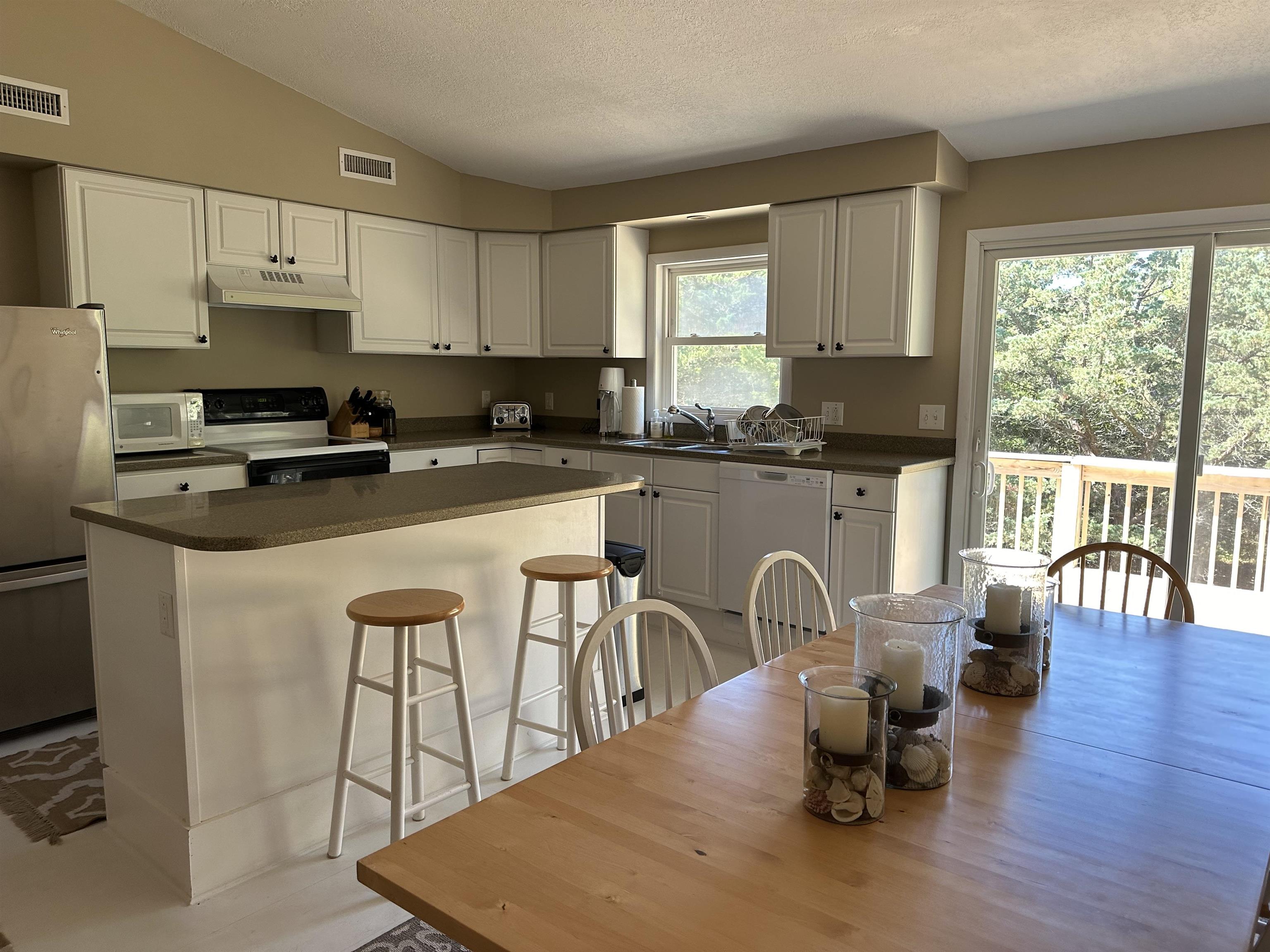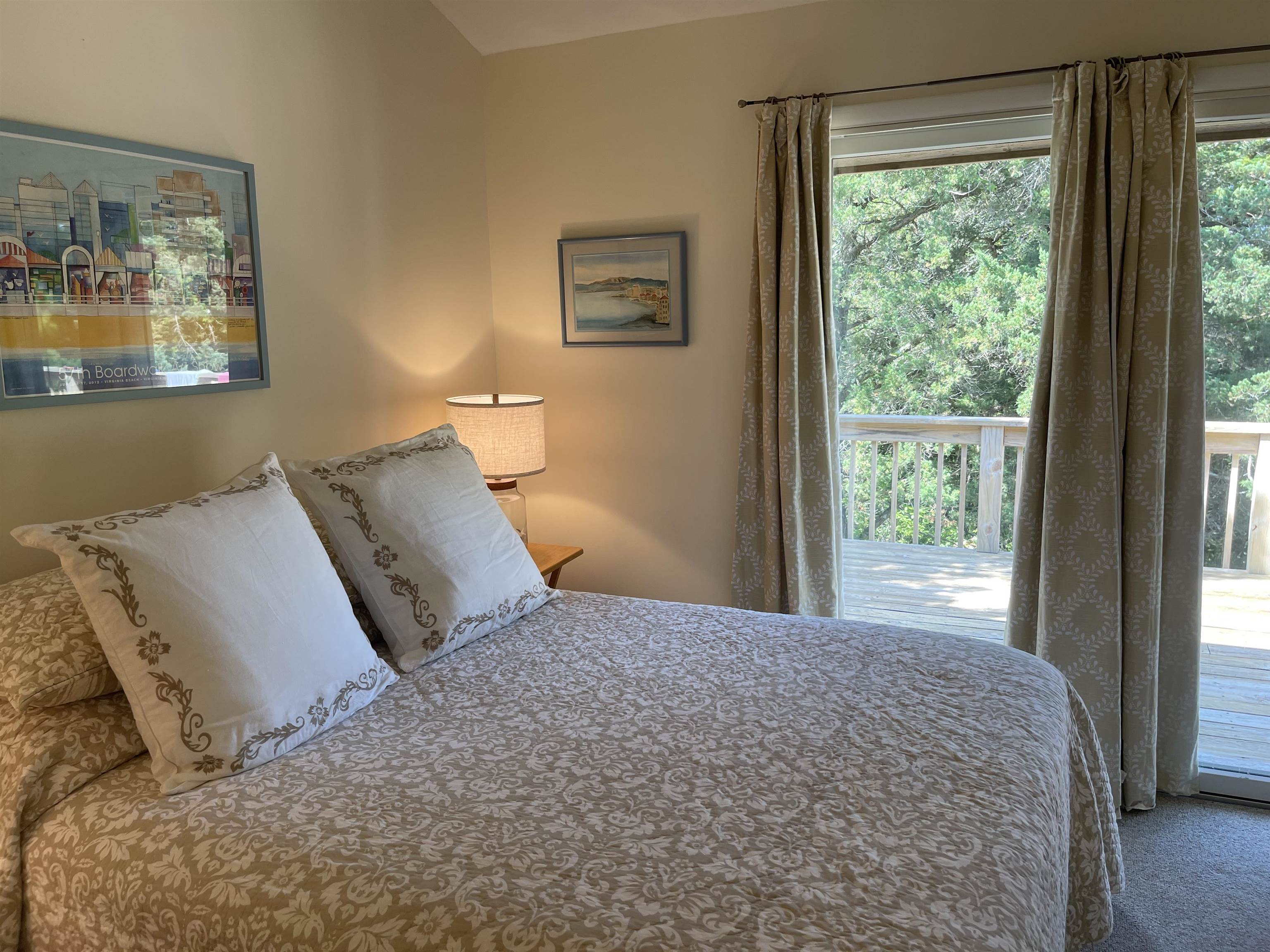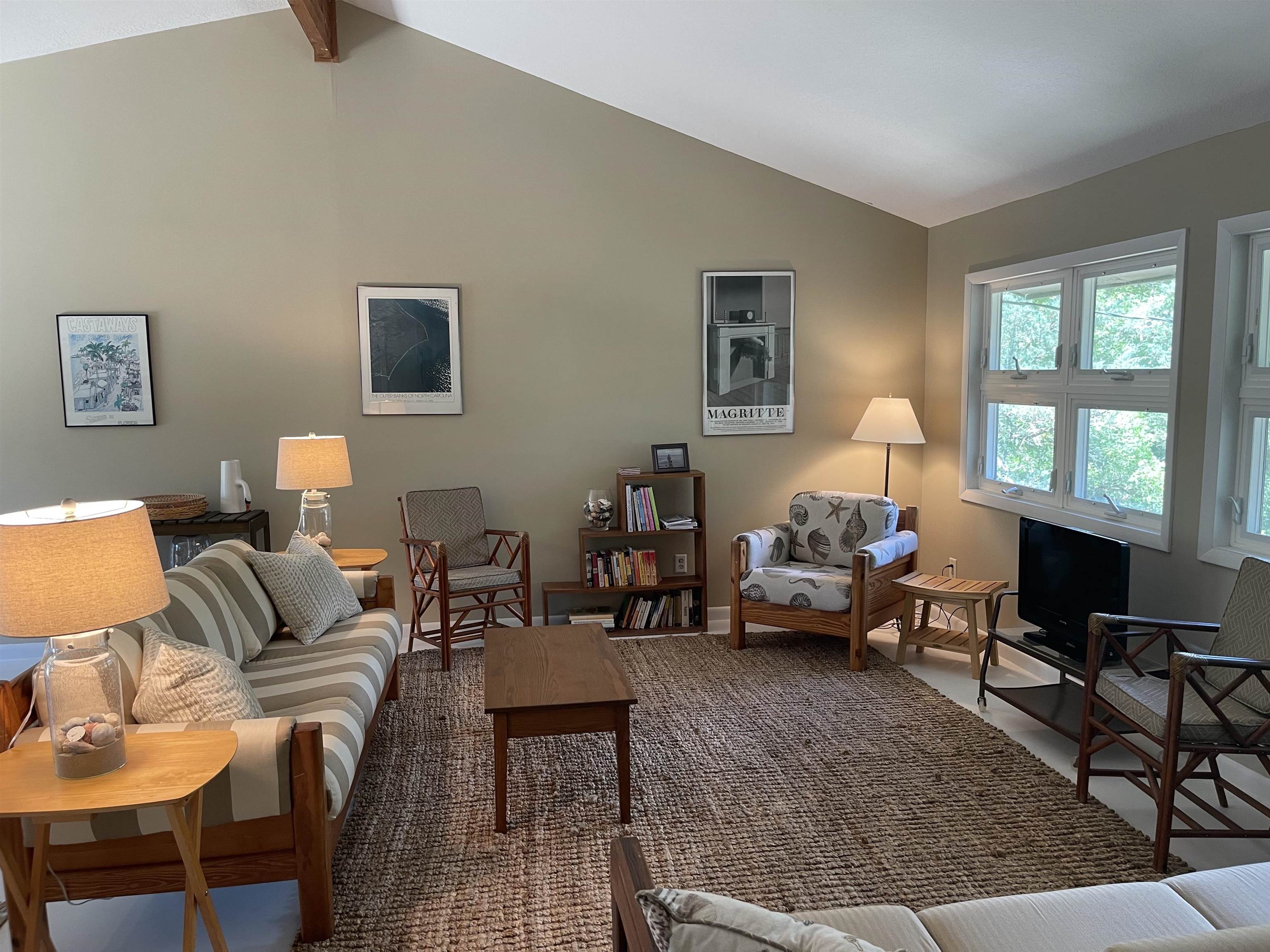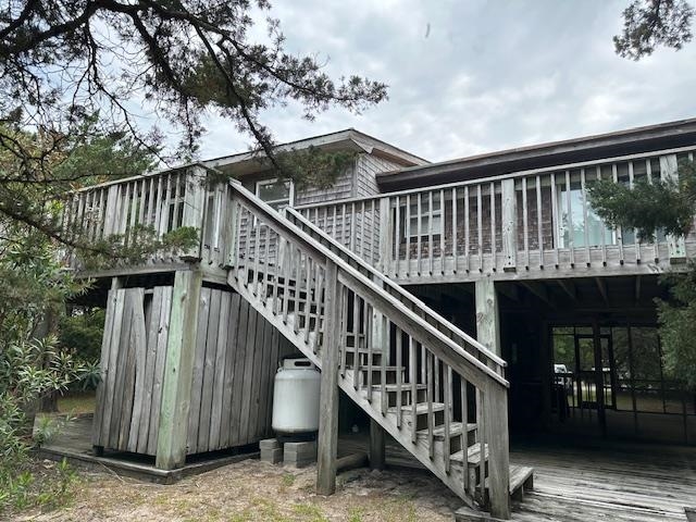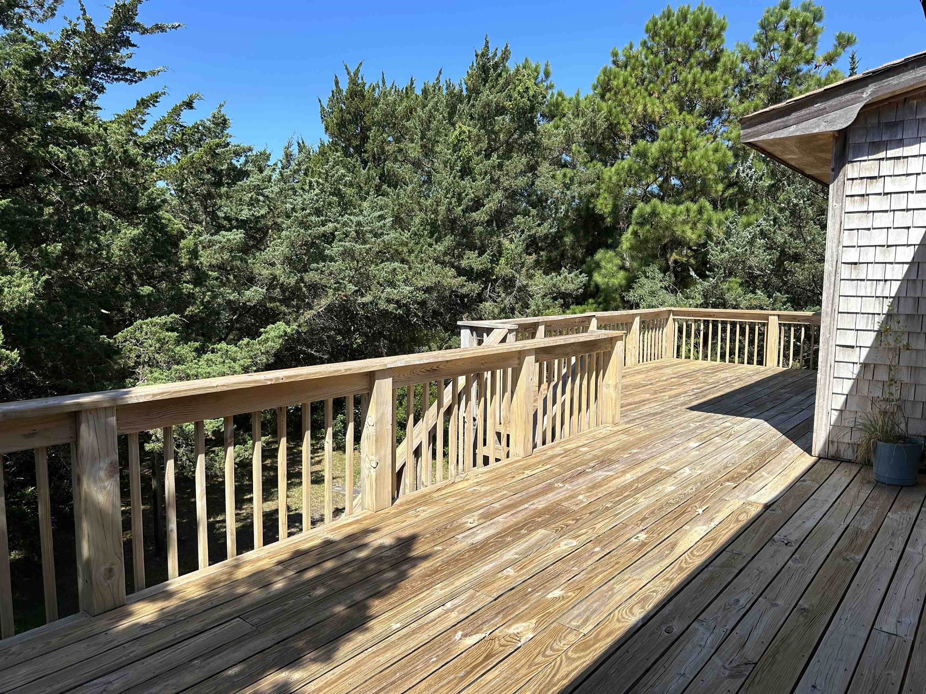 This 2 bedroom home is nestled in amongst the cover of a beautiful stand of trees in Jackson Dunes. Sand Dune Trail is off the beaten track and adds to the seclusion. The bedrooms are on the second floor along with one full bath, a washer/dryer closet and the cathedral ceilinged great room, kitchen and dining area. The kitchen was expanded and remodeled. It sports a new dishwasher, stainless refrigerator and a gas cook stove. A private sun deck is off the great room. Downstairs, you enter the home through a very cool and breezy screened porch. Off of the entry hallway, there is a storage closet housing an “on demand” hot water heater, a second tiled bath and a bonus room. This bonus room could be a TV room/den or a game room. This home has been well maintained. It comes fully furnished with appliances, furniture, bed linens, kitchenwares, bath and beach towels. Turn key for your Ocracoke getaway! The seller is also selling an adjacent vacant lot and is willing to combine the sale of the house and lot into one package price.